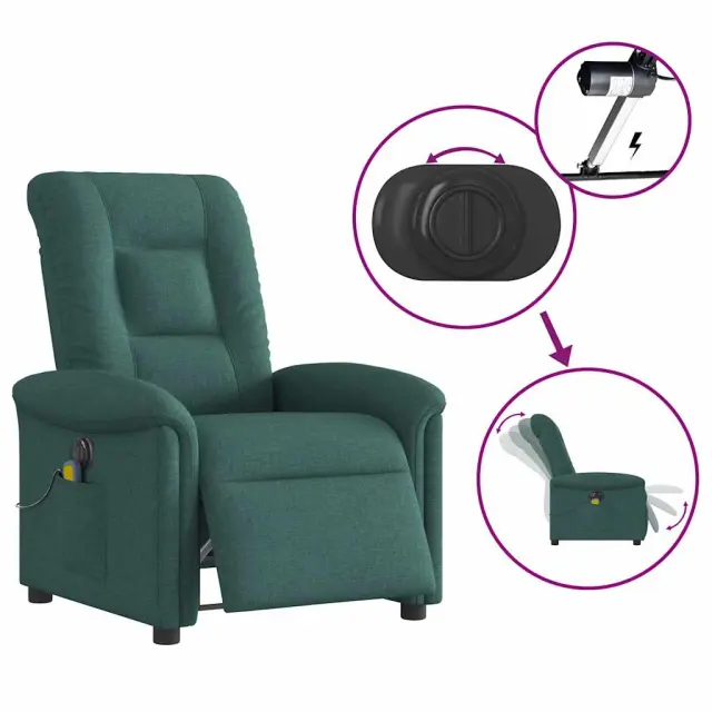 vidaXL Električni masažni naslanjač temno zeleno blago