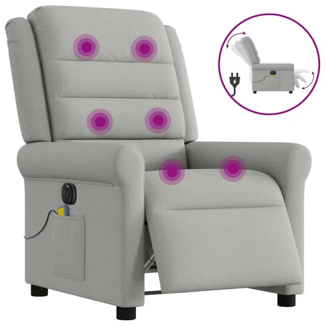 vidaXL Električni masažni naslanjač sivo blago