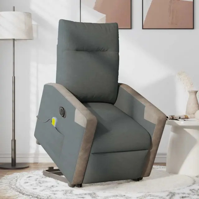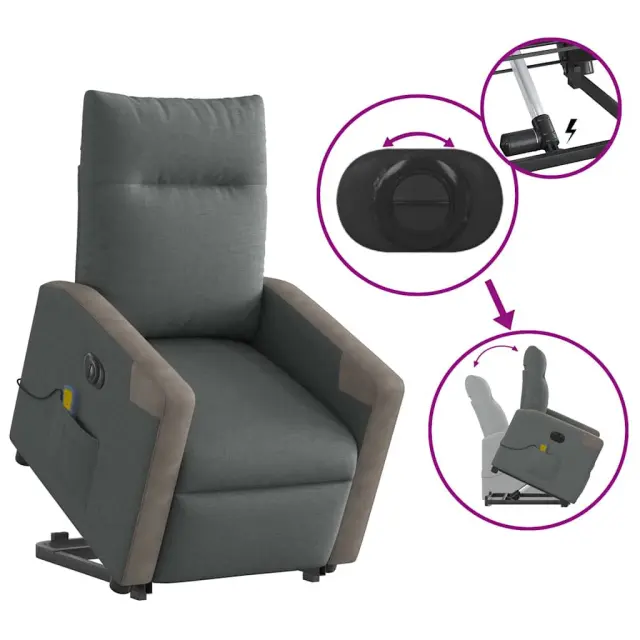 vidaXL Električni masažni naslanjač s funkcijo vstajanja temno siv