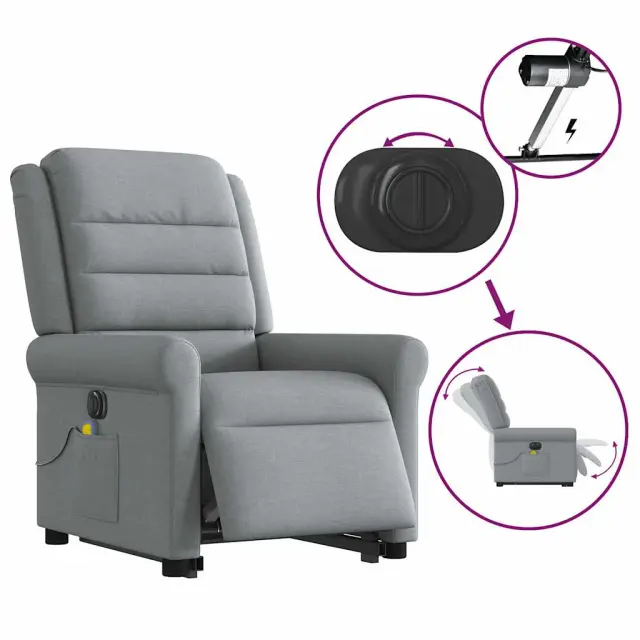 vidaXL Električni masažni naslanjač s funkcijo vstajanja svetlo siv