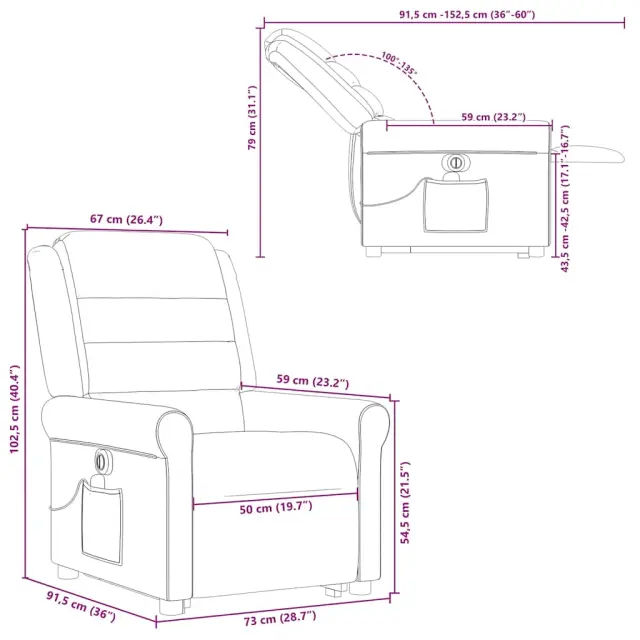 • Funkcija električnega nagiba: Ta naslanjač je opremljen tudi z električnim motorjem, ki pomaga samodejno nastaviti naslon za noge in naslonjalo za hrbet v poljuben položaj glede na vaše udobje s preprostim pritiskom na gumb na strani stola. Ta funkcija omogoča največji nagib 135 stopinj. Poleg tega se lahko naslonjalo z enostavnim pritiskom na gumb samodejno vrne na prvotno mesto.