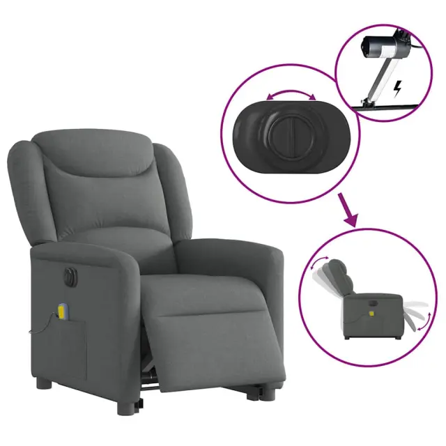 vidaXL Električni masažni naslanjač s funkcijo vstajanja temno siv