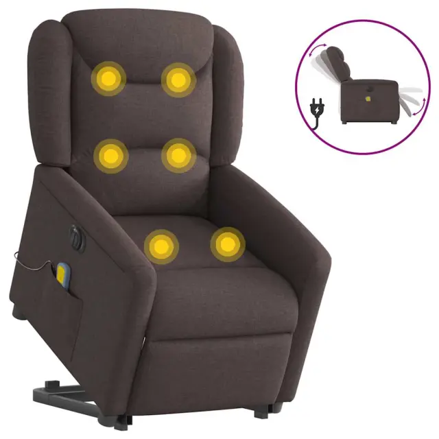 vidaXL Električni masažni naslanjač s funkcijo vstajanja temno rjav