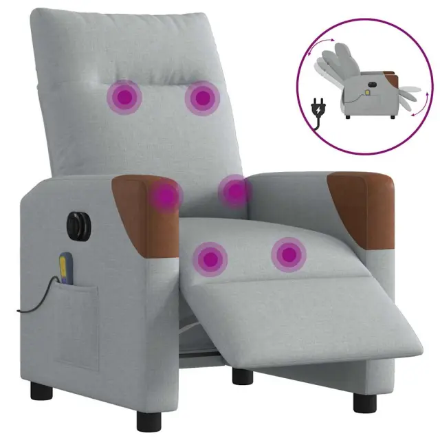 vidaXL Električni masažni naslanjač svetlo sivo blago