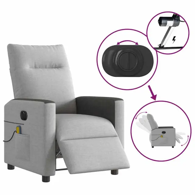 vidaXL Električni masažni naslanjač sivo blago