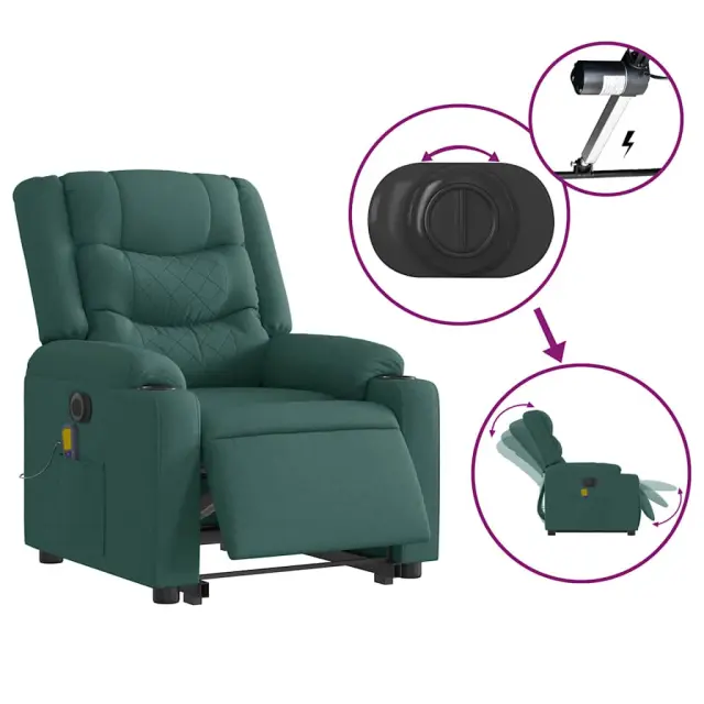 vidaXL Električni masažni naslanjač s funkcijo vstajanja temno zelen