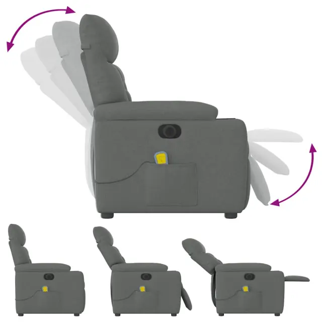 vidaXL Električni masažni naslanjač temno sivo blago