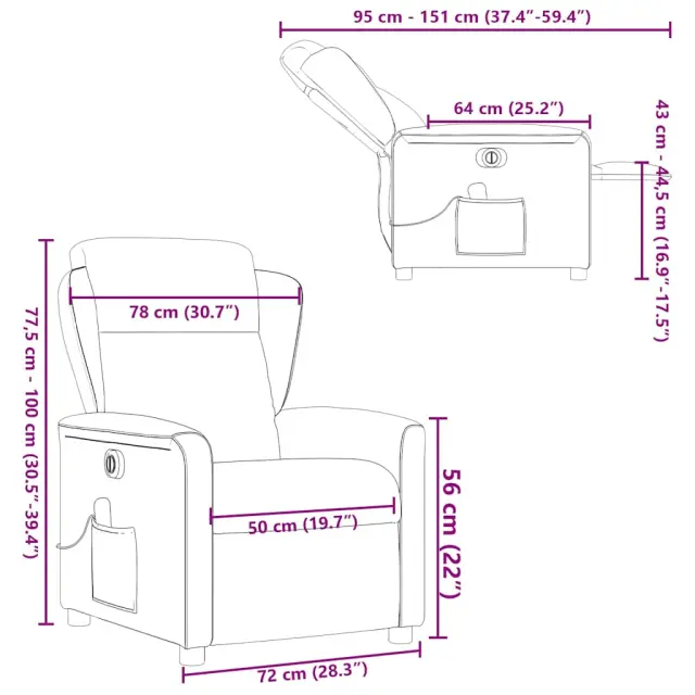 • Dimenzije v sedečem položaju: 78 x 95 x 100 cm (Š x G x V)