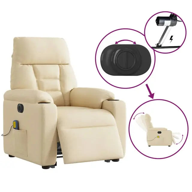 vidaXL Električni masažni naslanjač s funkcijo vstajanja krem