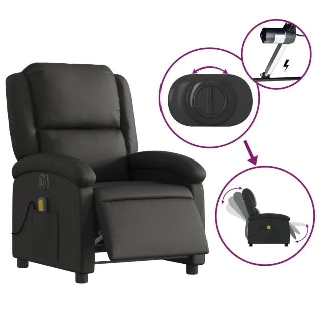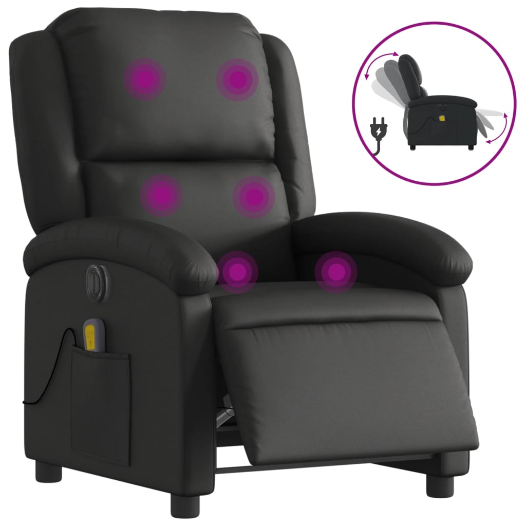 vidaXL Električni masažni naslanjač črno pravo usnje