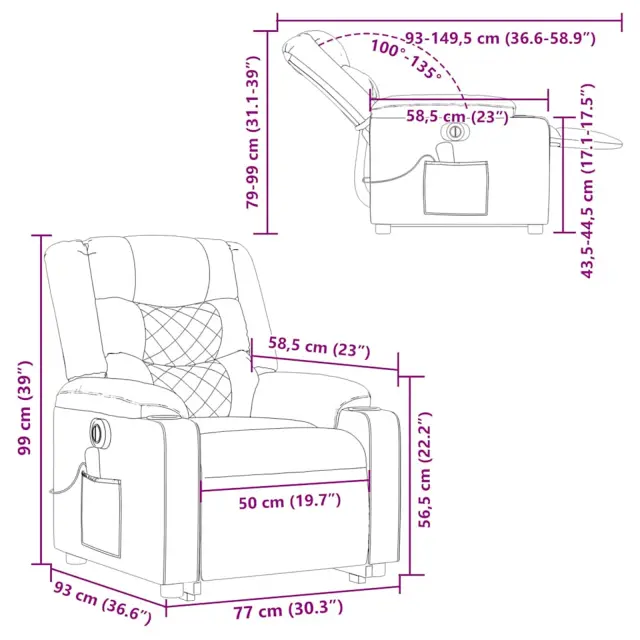 • Funkcija električnega nagiba: Ta naslanjač je opremljen tudi z električnim motorjem, ki pomaga samodejno nastaviti naslon za noge in naslonjalo za hrbet v poljuben položaj glede na vaše udobje s preprostim pritiskom na gumb na strani stola. Ta funkcija omogoča največji nagib 135 stopinj. Poleg tega se lahko naslonjalo z enostavnim pritiskom na gumb samodejno vrne na prvotno mesto.