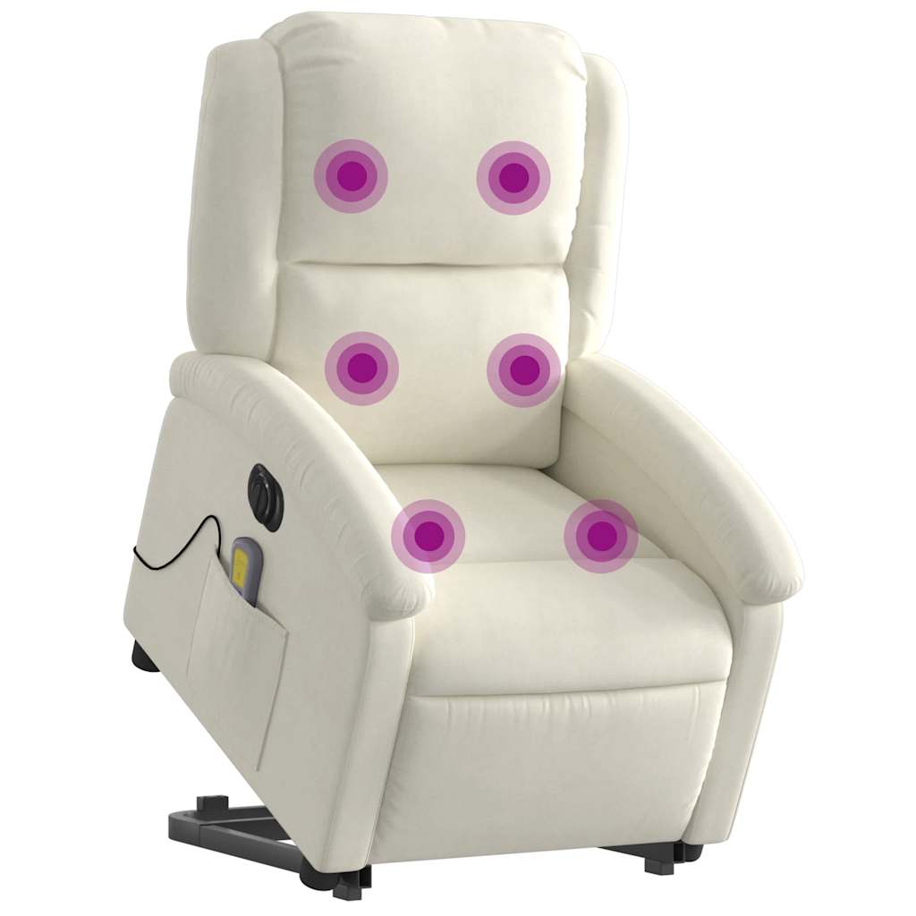 vidaXL Električni masažni naslanjač s funkcijo vstajanja krem žamet