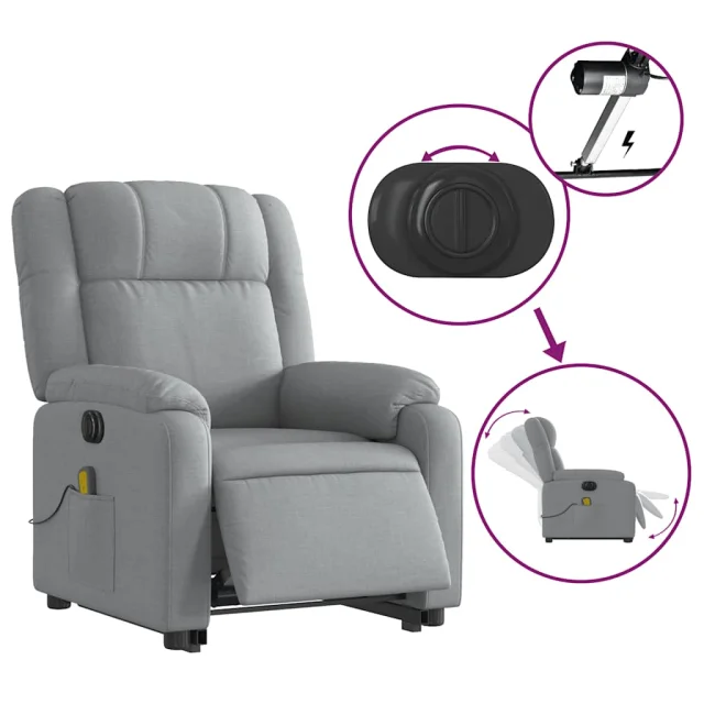 vidaXL Električni masažni naslanjač s funkcijo vstajanja svetlo siv