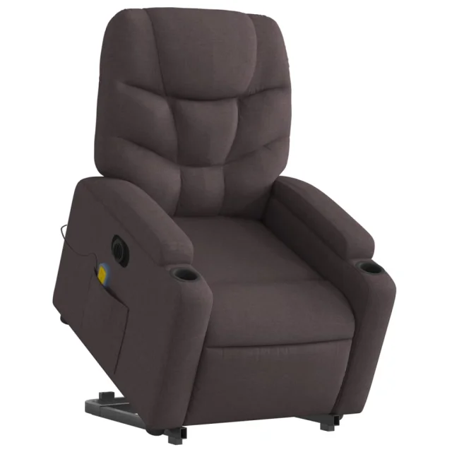 vidaXL Električni masažni naslanjač s funkcijo vstajanja temno rjav
