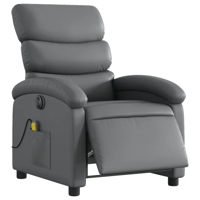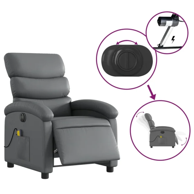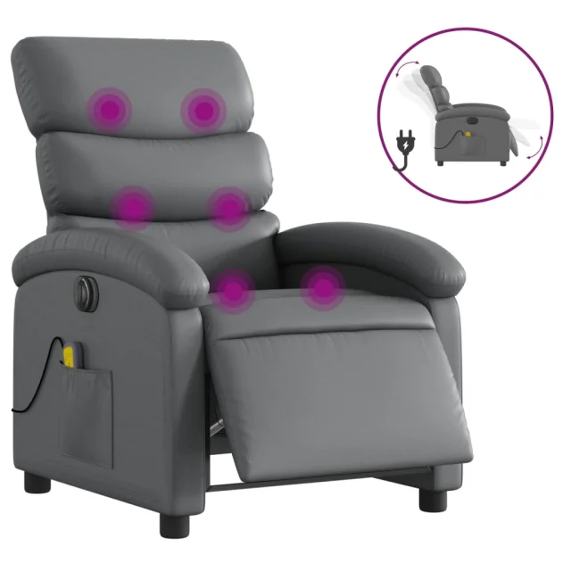 vidaXL Električni masažni naslanjač sivo umetno usnje