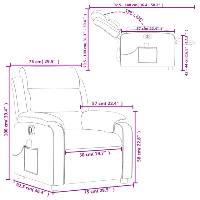 vidaXL Električni masažni naslanjač vinsko rdeče blago