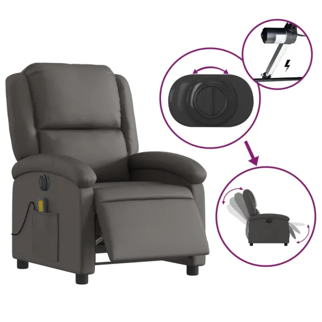 vidaXL Električni naslanjač sivo pravo usnje