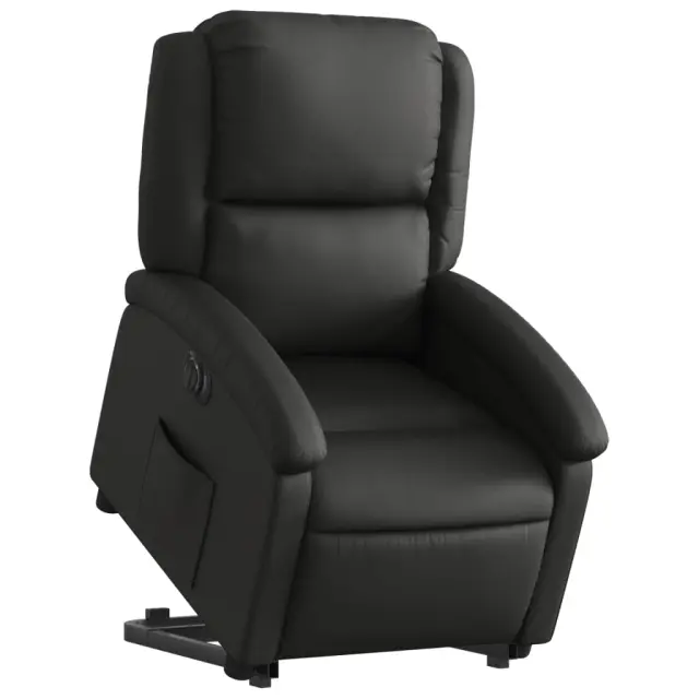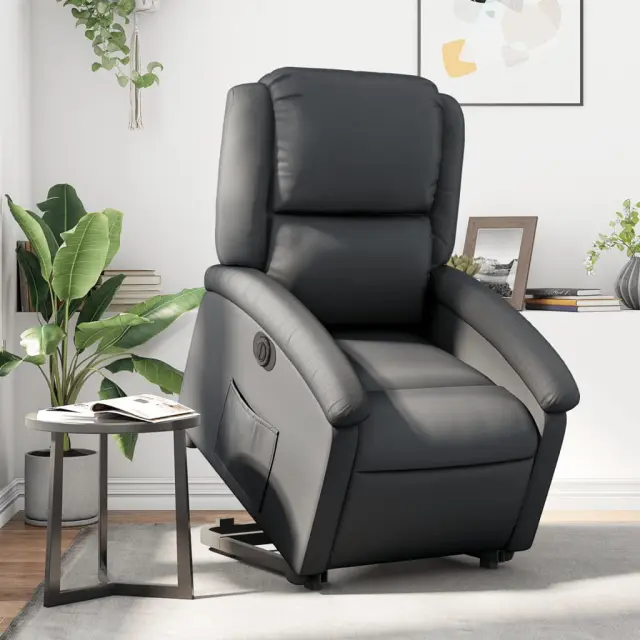 vidaXL Električni naslanjač s funkcijo vstajanja črno pravo usnje