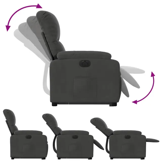 vidaXL Električni naslanjač s funkcijo vstajanja tem. siva mikrovlakna
