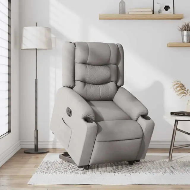vidaXL Električni naslanjač s funkcijo vstajanja svetlo siv blago