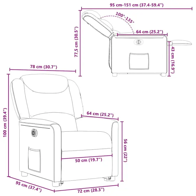 • Funkcija električnega nagiba: Ta naslanjač je opremljen tudi z električnim motorjem, ki pomaga samodejno nastaviti naslon za noge in naslonjalo za hrbet v poljuben položaj glede na vaše udobje s preprostim pritiskom na gumb na strani stola. Ta funkcija omogoča največji nagib 135 stopinj. Poleg tega se lahko naslonjalo z enostavnim pritiskom na gumb samodejno vrne na prvotno mesto.