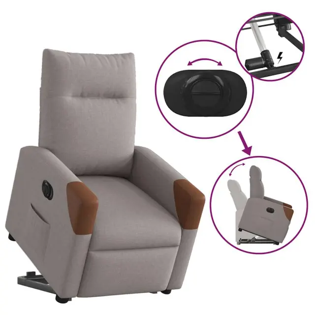 vidaXL Električni naslanjač s funkcijo vstajanja taupe blago