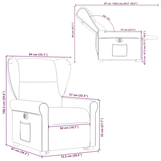 • Funkcija električnega nagiba: Ta naslanjač je opremljen tudi z električnim motorjem, ki pomaga samodejno nastaviti naslon za noge in naslonjalo za hrbet v poljuben položaj glede na vaše udobje s preprostim pritiskom na gumb na strani stola. Ta funkcija omogoča največji nagib 135 stopinj. Poleg tega se lahko naslonjalo z enostavnim pritiskom na gumb samodejno vrne na prvotno mesto.