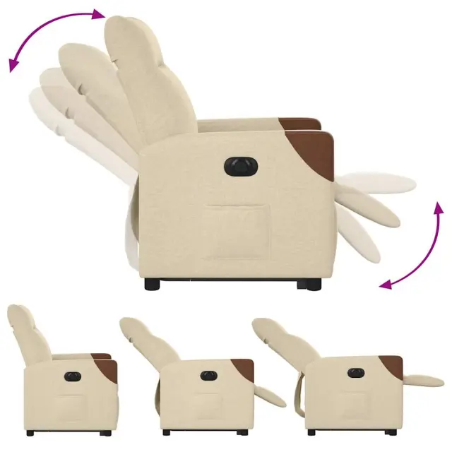 vidaXL Električni naslanjač s funkcijo vstajanja krem blago