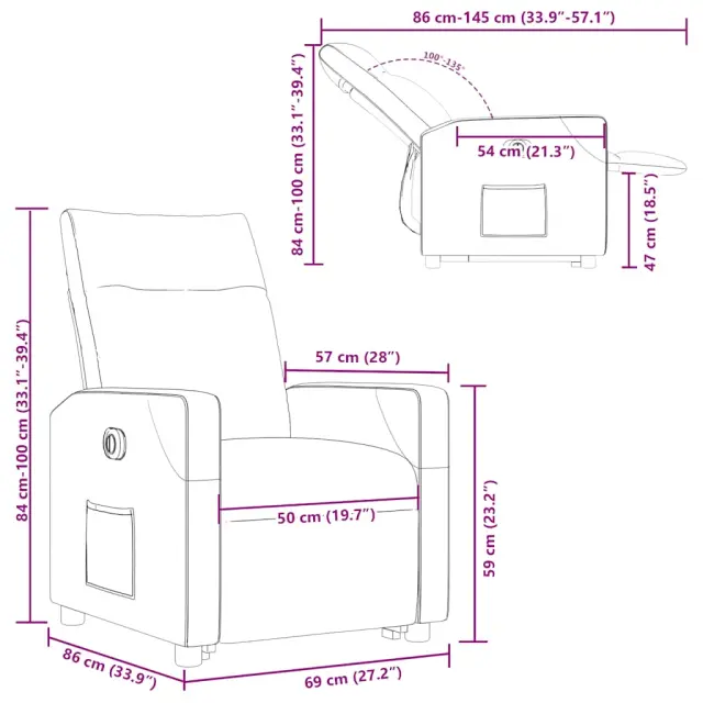 • Funkcija električnega nagiba: Ta naslanjač je opremljen tudi z električnim motorjem, ki pomaga samodejno nastaviti naslon za noge in naslonjalo za hrbet v poljuben položaj glede na vaše udobje s preprostim pritiskom na gumb na strani stola. Ta funkcija omogoča največji nagib 135 stopinj. Poleg tega se lahko naslonjalo z enostavnim pritiskom na gumb samodejno vrne na prvotno mesto.
