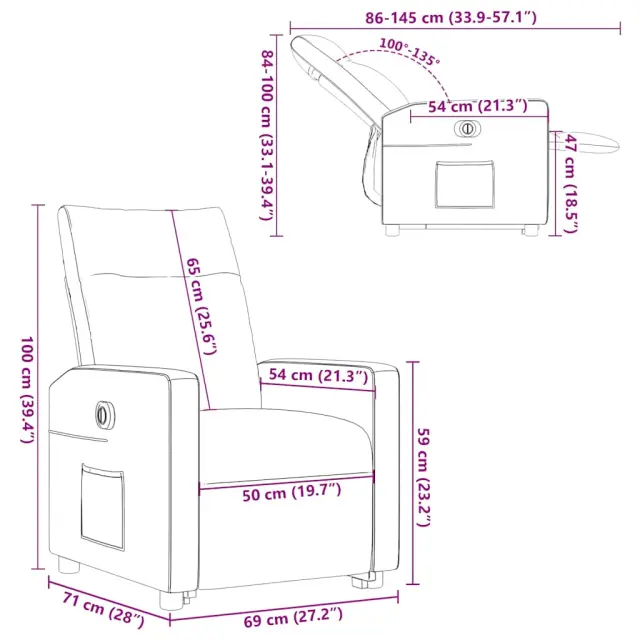 • Funkcija električnega nagiba: Ta naslanjač je opremljen tudi z električnim motorjem, ki pomaga samodejno nastaviti naslon za noge in naslonjalo za hrbet v poljuben položaj glede na vaše udobje s preprostim pritiskom na gumb na strani stola. Ta funkcija omogoča največji nagib 135 stopinj. Poleg tega se lahko naslonjalo z enostavnim pritiskom na gumb samodejno vrne na prvotno mesto.