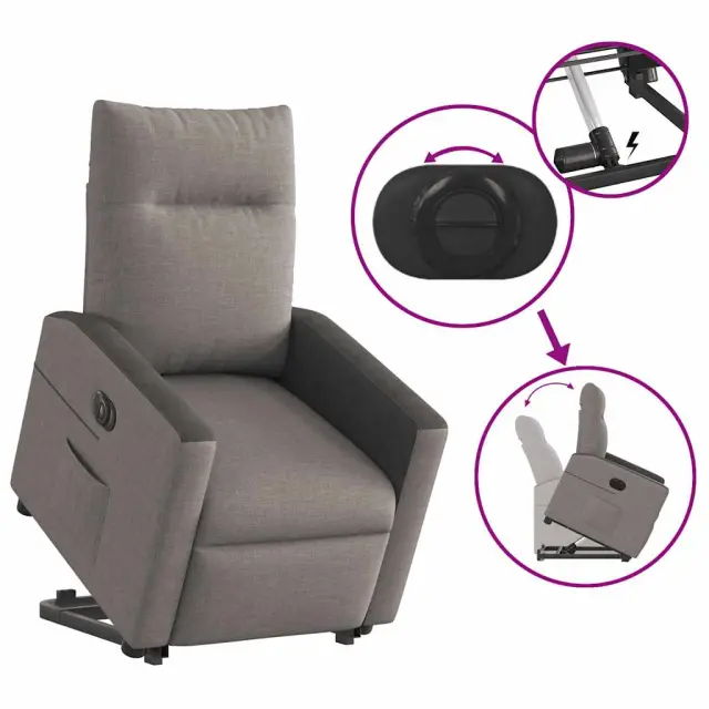 vidaXL Električni naslanjač s funkcijo vstajanja taupe blago