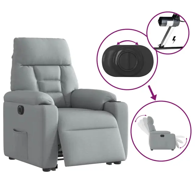 vidaXL Električni naslanjač s funkcijo vstajanja svetlo siv