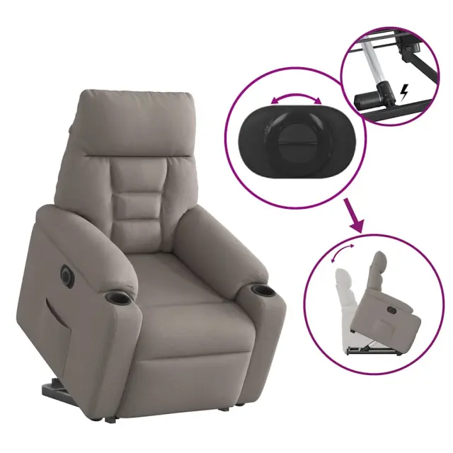 vidaXL Električni naslanjač s funkcijo vstajanja taupe blago
