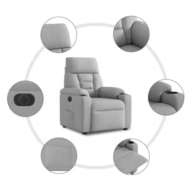 • Funkcija električnega nagiba: Ta naslanjač je opremljen z električnim motorjem, ki pomaga samodejno nastaviti naslon za noge in naslonjalo za hrbet v poljuben položaj glede na vaše udobje s preprostim pritiskom na gumb na strani stola. Ta funkcija omogoča največji nagib 135 stopinj. Poleg tega se lahko naslonjalo z enostavnim pritiskom na gumb samodejno vrne na prvotno mesto.