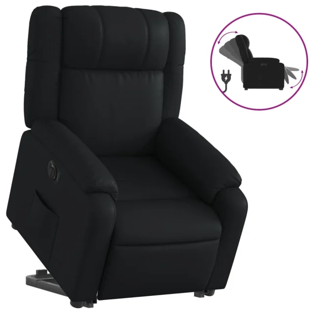 vidaXL Električni naslanjač s funkcijo vstajanja črno umetno usnje