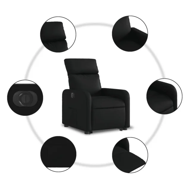 vidaXL Električni naslanjač s funkcijo vstajanja črno umetno usnje