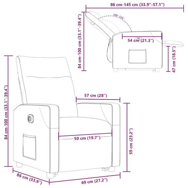 • Funkcija električnega nagiba: Ta naslanjač je opremljen tudi z električnim motorjem, ki pomaga samodejno nastaviti naslon za noge in naslonjalo za hrbet v poljuben položaj glede na vaše udobje s preprostim pritiskom na gumb na strani stola. Ta funkcija omogoča največji nagib 135 stopinj. Poleg tega se lahko naslonjalo z enostavnim pritiskom na gumb samodejno vrne na prvotno mesto.