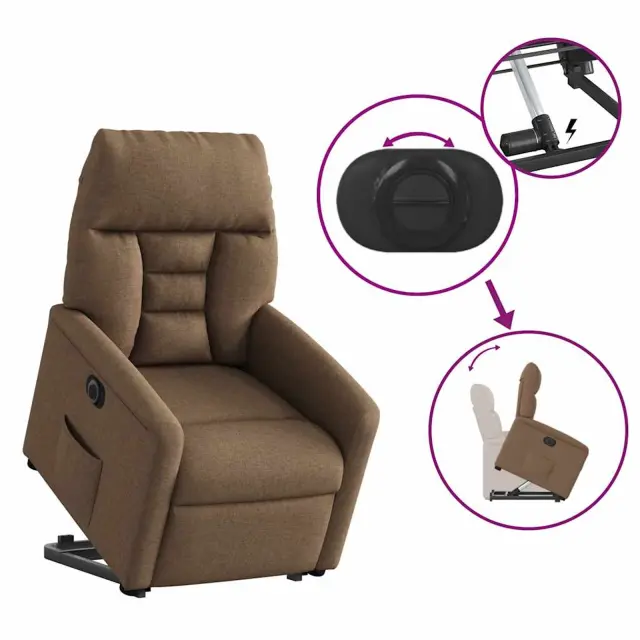 vidaXL Električni naslanjač s funkcijo vstajanja rjavo blago