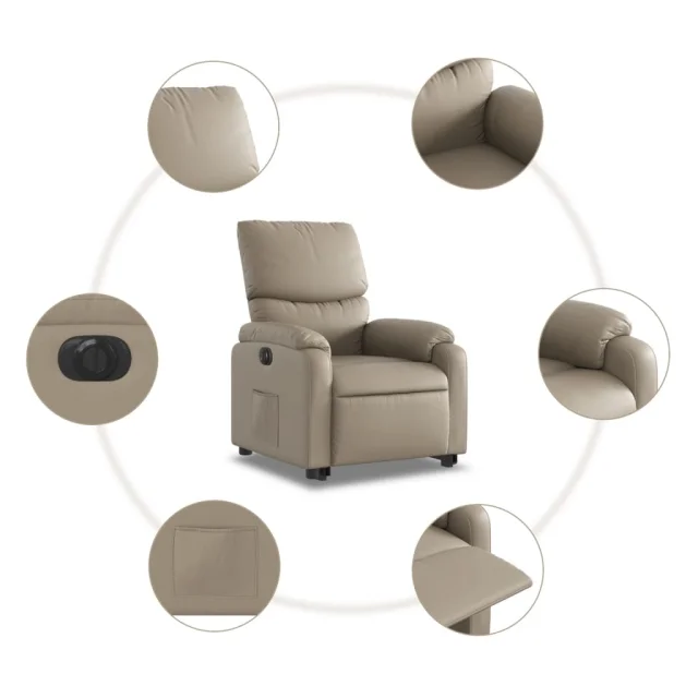 vidaXL Električni naslanjač s funkcijo vstajanja kapučino umetno usnje