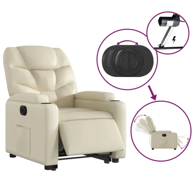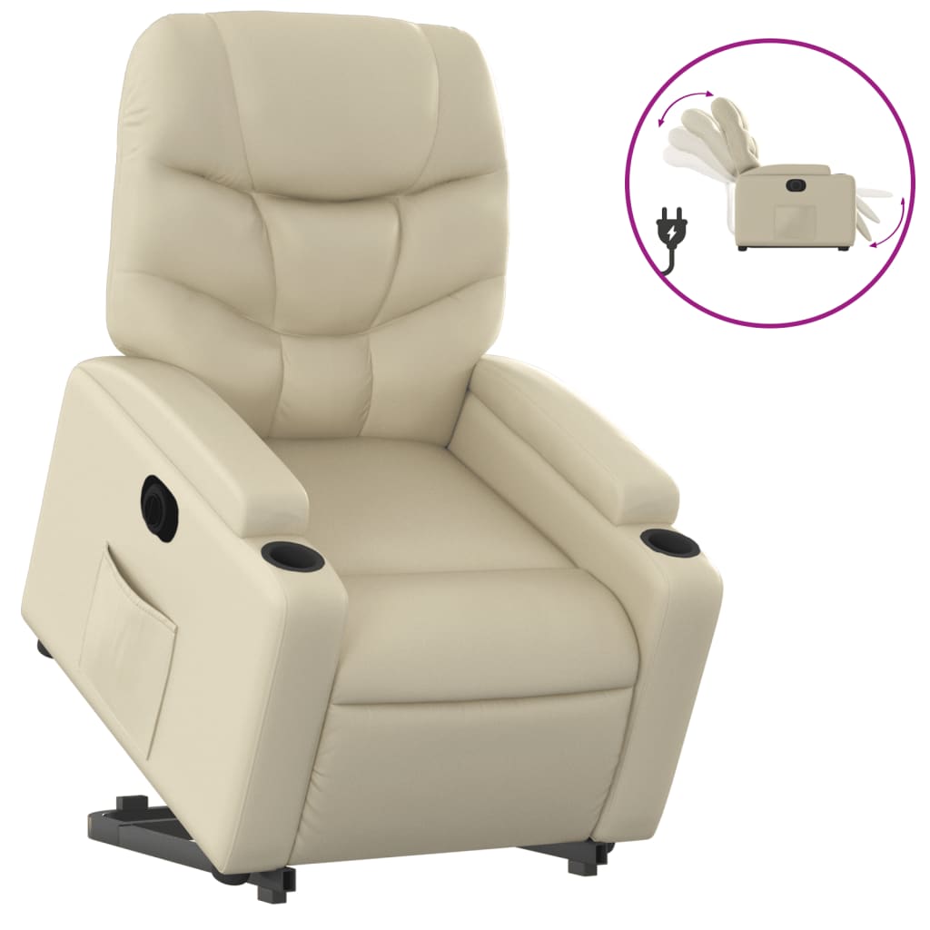 vidaXL Električni naslanjač s funkcijo vstajanja krem umetno usnje