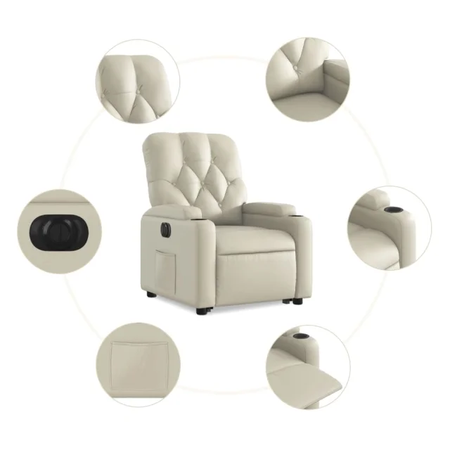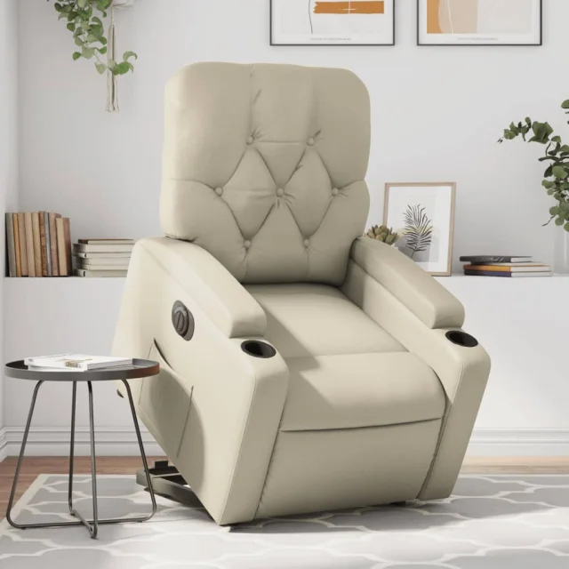 vidaXL Električni naslanjač s funkcijo vstajanja krem umetno usnje