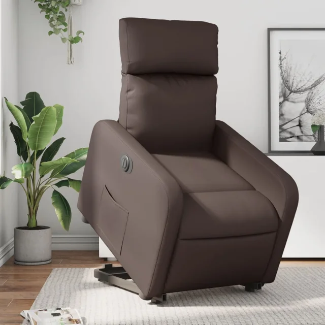 vidaXL Električni naslanjač s funkcijo vstajanja rjavo umetno usnje
