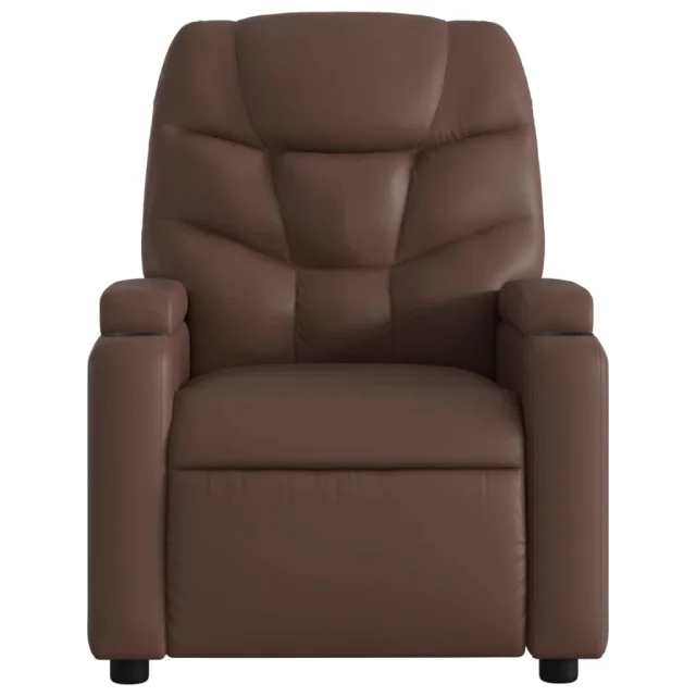 vidaXL Električni naslanjač s funkcijo vstajanja rjavo umetno usnje