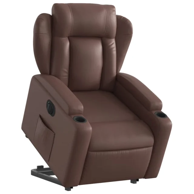 vidaXL Električni naslanjač s funkcijo vstajanja rjavo umetno usnje