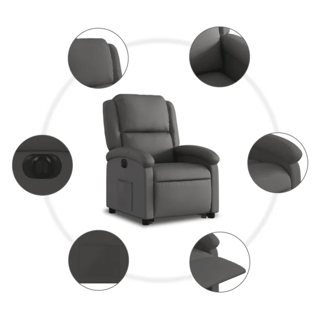 vidaXL Električni naslanjač s funkcijo vstajanja sivo pravo usnje