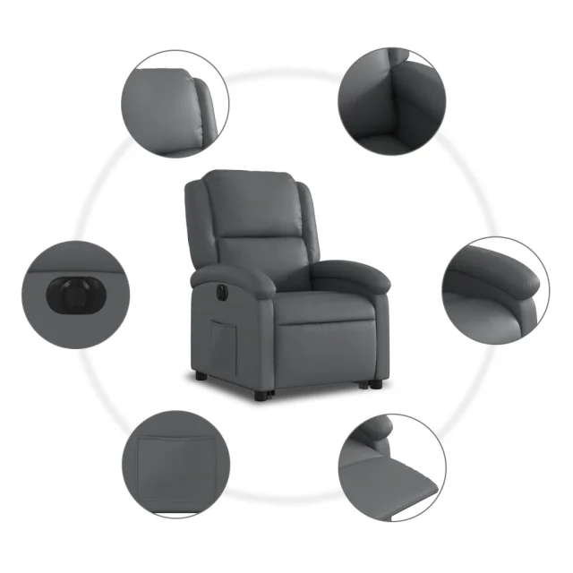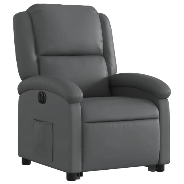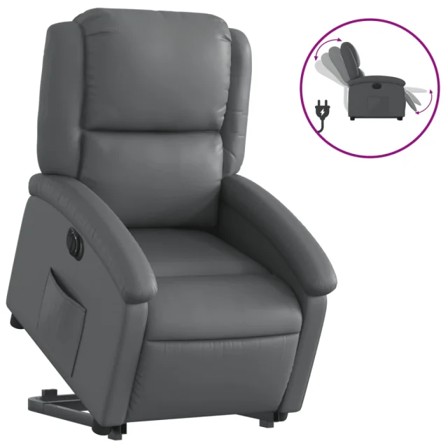 vidaXL Električni naslanjač s funkcijo vstajanja sivo umetno usnje