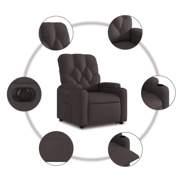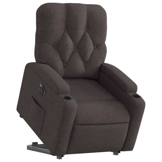 vidaXL Električni naslanjač s funkcijo vstajanja temno rjavo blago