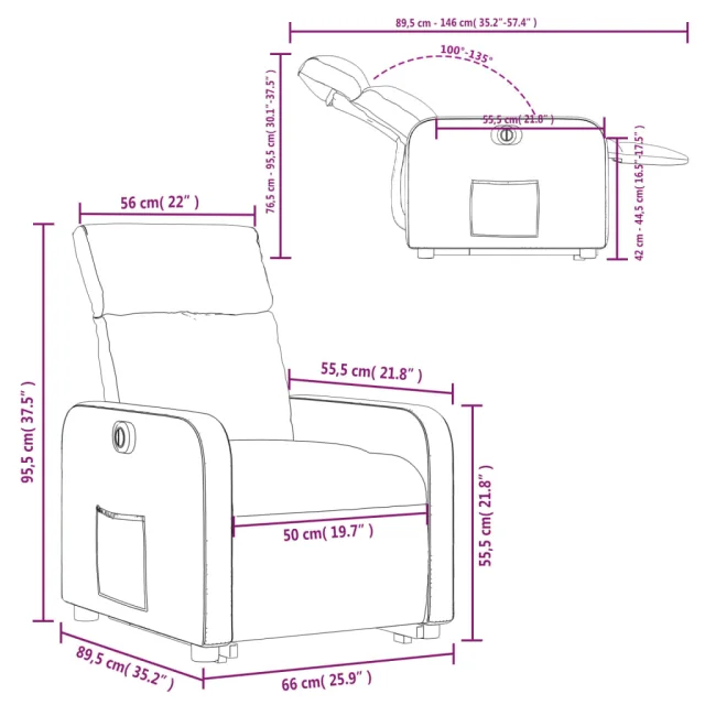 • Funkcija električnega nagiba: Ta naslanjač je opremljen tudi z električnim motorjem, ki pomaga samodejno nastaviti naslon za noge in naslonjalo za hrbet v poljuben položaj glede na vaše udobje s preprostim pritiskom na gumb na strani stola. Ta funkcija omogoča največji nagib 135 stopinj. Poleg tega se lahko naslonjalo z enostavnim pritiskom na gumb samodejno vrne na prvotno mesto.