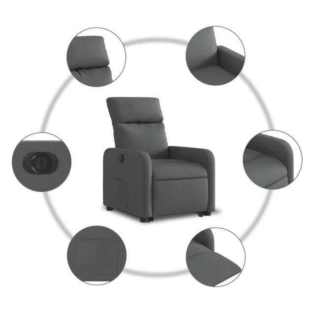 vidaXL Električni naslanjač s funkcijo vstajanja temno siv