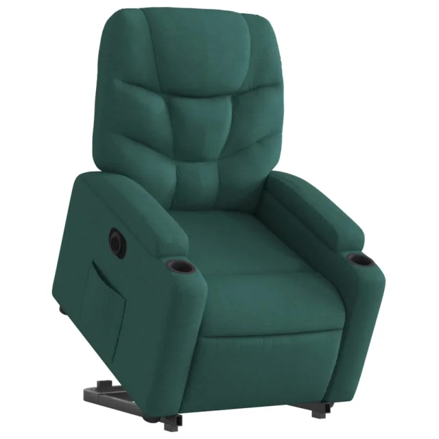 vidaXL Električni naslanjač s funkcijo vstajanja temno zeleno blago